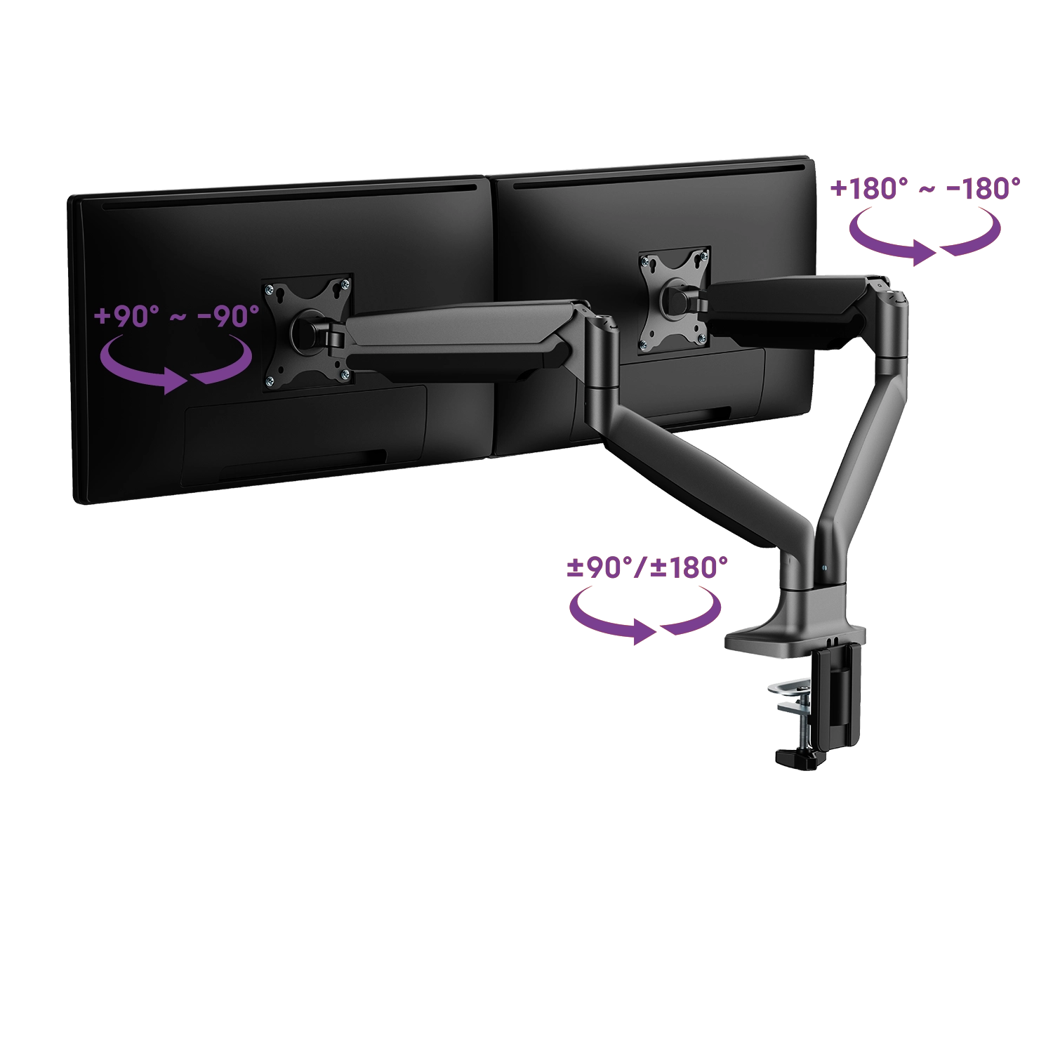 W trosce o Twoje potrzeby, uchwyt do monitorów Spacetronik SPA-S120B został zbudowany w sposób dający Ci pełnie kontroli. Możesz sam ustawić pozycję monitorów na nim się znajdujących. Masz możliwość zmiany nachylenia (+90°~-90°), obrotu (+90°~-90°) i rotacji (+180°~-180°). Dzięki temu Twoje monitory zawsze będą znajdowały się dokładnie w takiej pozycji, jakiej chcesz. Dlatego też, gdy np. będzie oślepiać Cię słońce, możesz bez problemu po prostu zmienić pozycję swojego monitora. Pracuj wygodniej z uchwytem na monitory Spacetronik SPA-S120B!