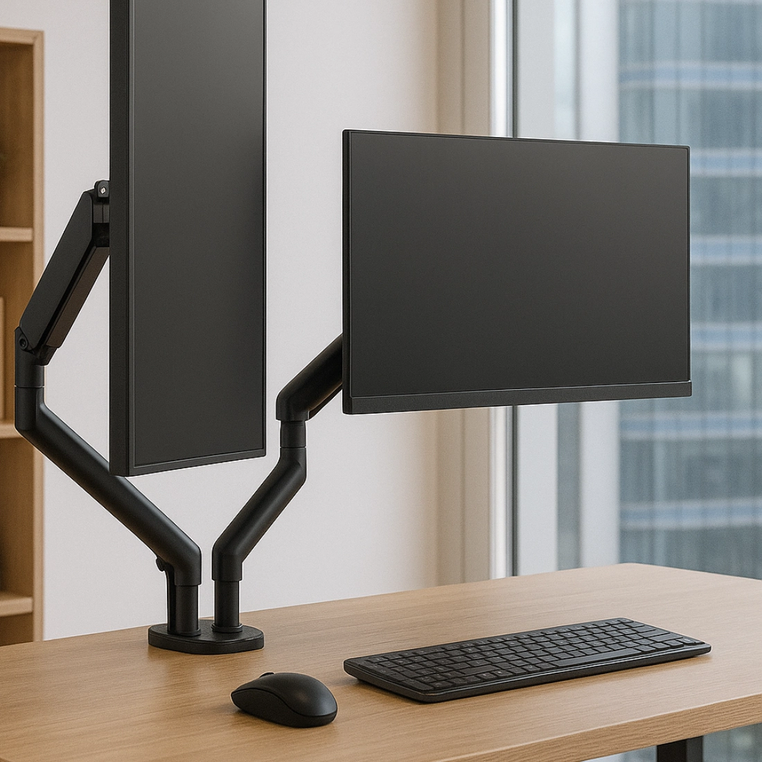 – 2× monitor 13″–32″, 2–9 kg/ramię