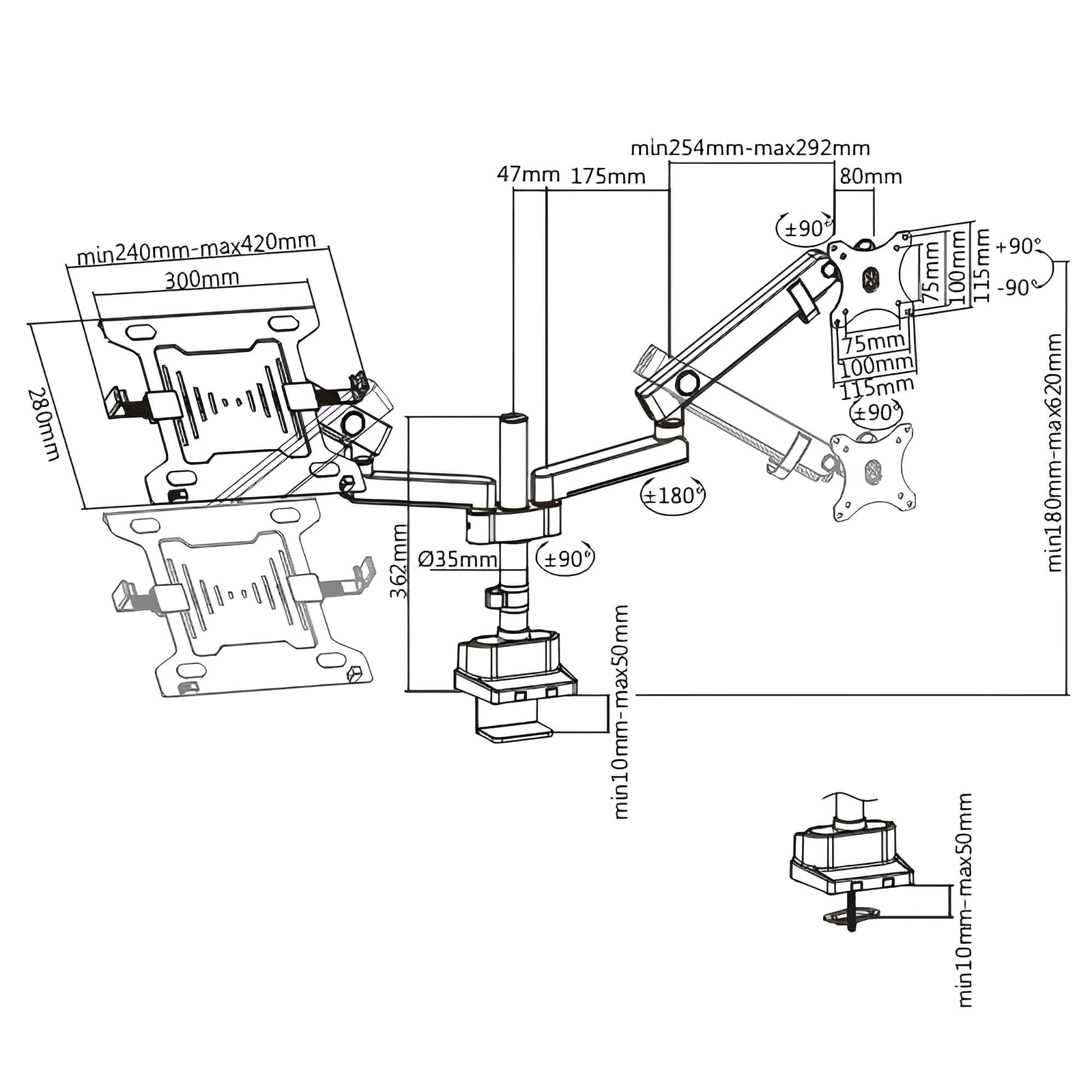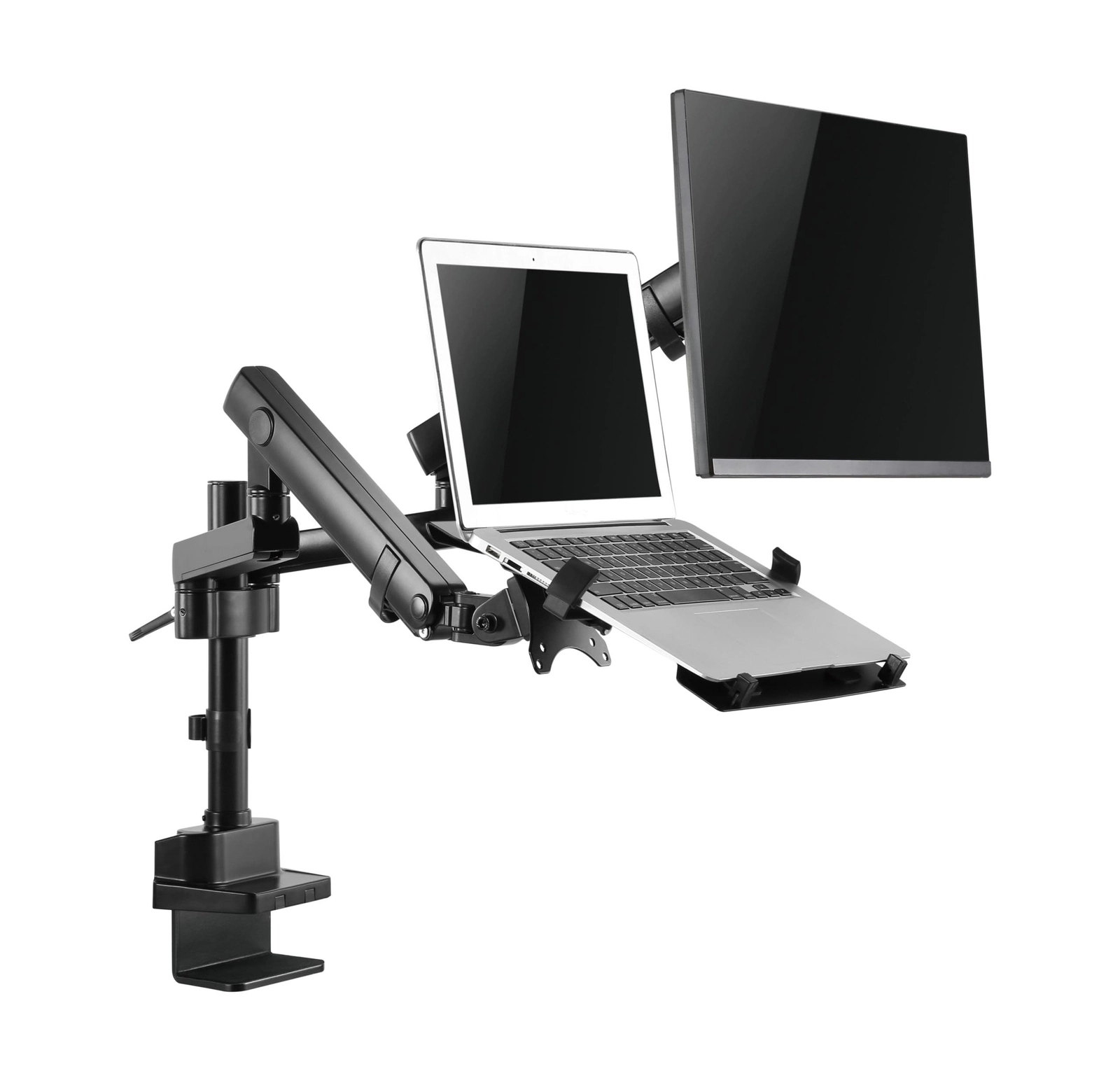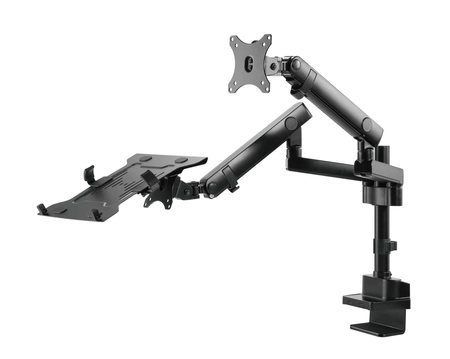 Nieodłącznym elementem wielu biurek w aktualnych czasach są stojące na nich monitory. Niektórzy idą nawet o krok dalej i stawiają na nich również laptopa. Jak możesz sobie wyobrazić, mocno ogranicza to przestrzeń na blacie. Przestrzeń, która podczas codziennego użytkowania jest niezbędna, by móc wydajnie korzystać z biurka. Czujesz, że jest to problem, który Cię dotyczy? Z rozwiązaniem przychodzi uchwyt na monitor i laptopa Spacetronik SPA-H121! Bez problemu przymocujesz go do krawędzi biurka. Tym samym monitor i laptop będą znajdowały się nad biurkiem. Zyskasz dzięki temu cenną przestrzeń roboczą.
