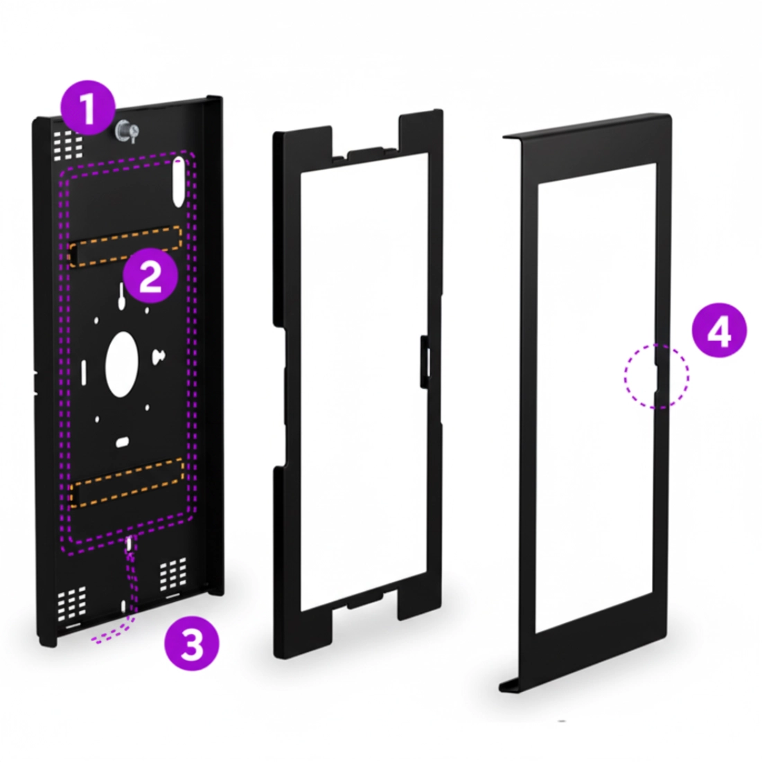 Precyzyjne wycięcia nie ograniczają kamer ani przycisków, a port zasilania pozostaje dostępny do pracy ciągłej. Prowadzenie kabli pozwala ukryć przewody, dzięki czemu instalacja wygląda czysto i profesjonalnie.