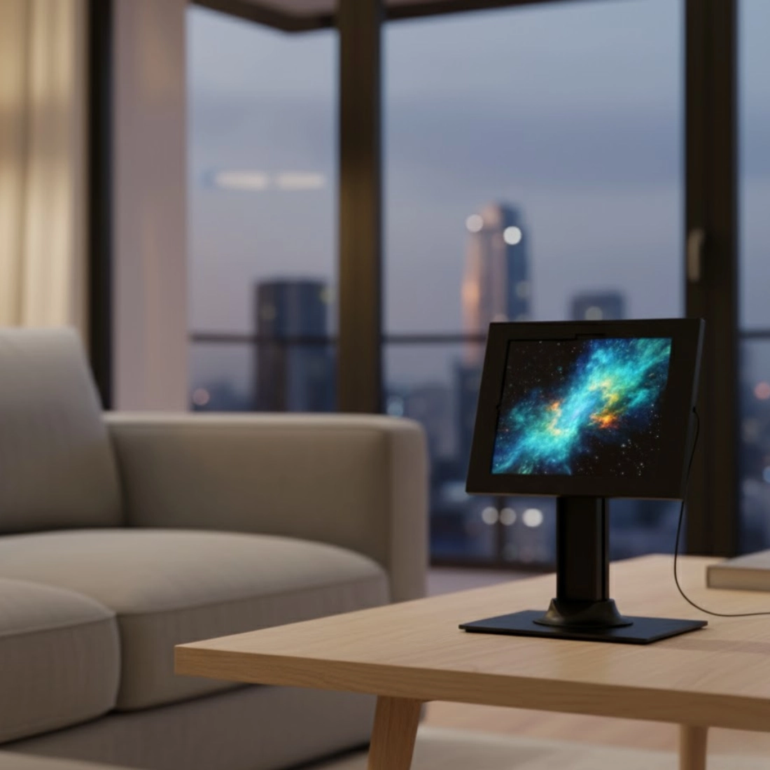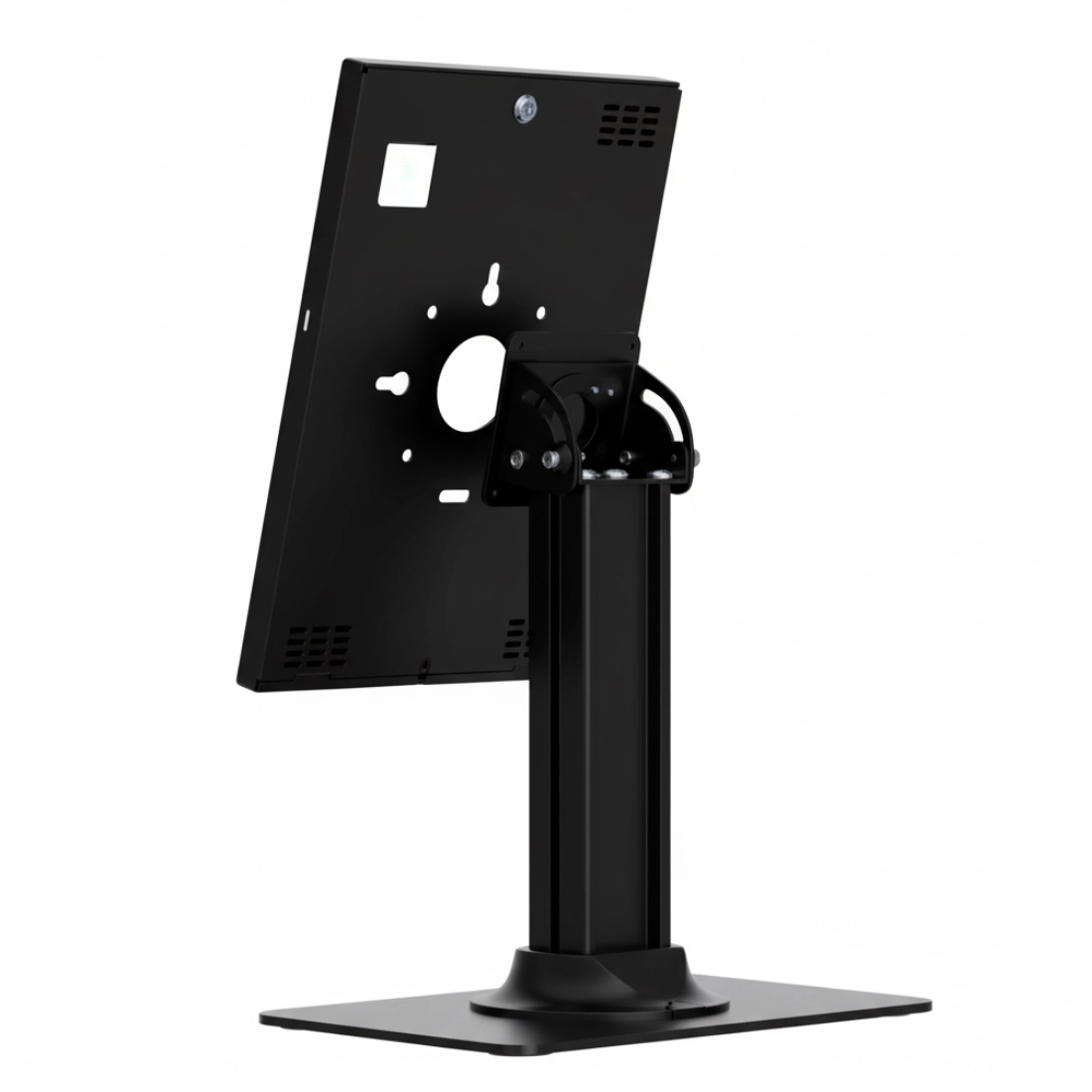 Gruba stal malowana proszkowo, zamek bębenkowy na klucz i kompatybilność VESA zapewniają wysoki poziom bezpieczeństwa oraz elastyczny montaż w dowolnym środowisku komercyjnym.