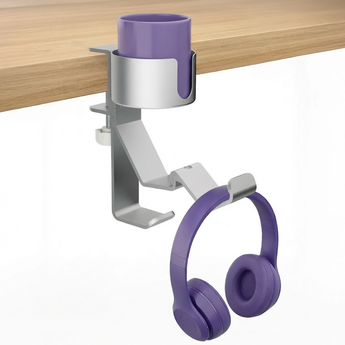 Gdy kubek stoi na biurku, łatwo go potrącić, a słuchawki często lądują na blacie lub krześle. SPB029W porządkuje te elementy: napój trafia do uchwytu, a headset na haczyki – dzięki temu stanowisko jest bezpieczniejsze i bardziej uporządkowane.