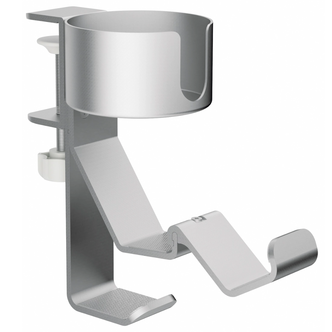 Boczny organizer do biurka na zacisk – uchwyt na kubek i haczyki na słuchawki, biały (SPB029W)