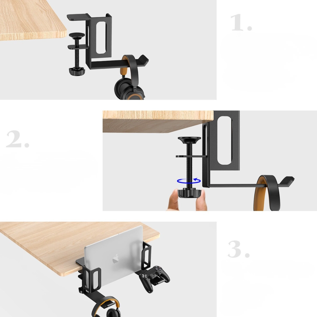- Typ produktu: uchwyt podbiurkowy 2w1 na laptopa i słuchawki