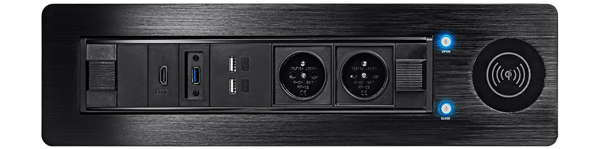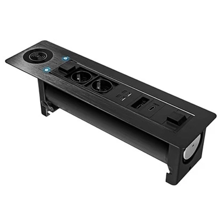 Czy poszukujesz idealnego rozwiązania, które połączy elegancję i funkcjonalność w Twoim biurze, salonie sprzedaży, sali konferencyjnej lub domu? Gniazdo blatowe zasuwane Spacetronik to wszechstronny produkt, który sprosta każdemu wyzwaniu. Dzięki nowoczesnemu designowi i różnorodnym portom, takim jak USB, HDMI i Ethernet, oraz możliwości szybkiego ładowania indukcyjnego, nasze gniazda meblowe zapewnią wygodę i estetykę w każdej przestrzeni pracy.