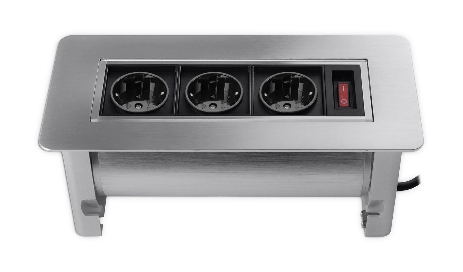 -Łatwa instalacja: Prosty montaż poprzez wycięcie otworu w blacie i umieszczenie gniazda w odpowiednim miejscu.