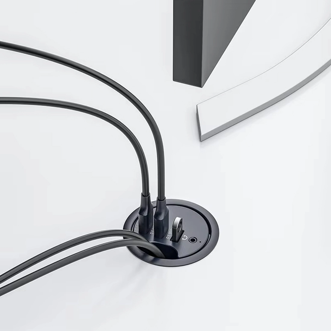 - Montaż w otworze 60 mm: stabilne i estetyczne rozwiązanie pozwalające zorganizować kable bez bałaganu na biurku.