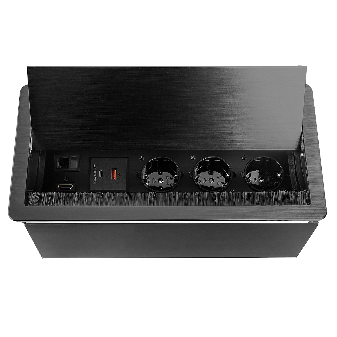 Otwierane gniazdo blatowe to idealne rozwiązanie dla osób ceniących sobie elegancję i funkcjonalność. Dzięki przemyślanej konstrukcji, gniazdo jest dyskretnie ukryte w blacie, co pozwala na zachowanie estetyki i porządku w miejscu pracy czy kuchni. Klapkę wystarczy przesunąć klapkę aby uzyskać łatwy dostęp do zasilania. Po podłączeniu, gniazdo można zamknąć, co chroni je przed kurzem i uszkodzeniami.