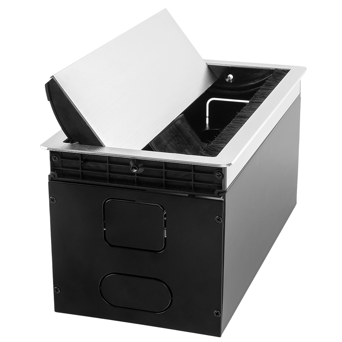 • Elegancki mediaport do montażu w blacie, otwierany. Posiada 3 gniazda elektryczne (Schuko), ładowarka usb pd gniazdo HDMI oraz gniazdo Ethernet (RJ-45). Długość kabla 1,2 m. W kolorze SREBRNYM