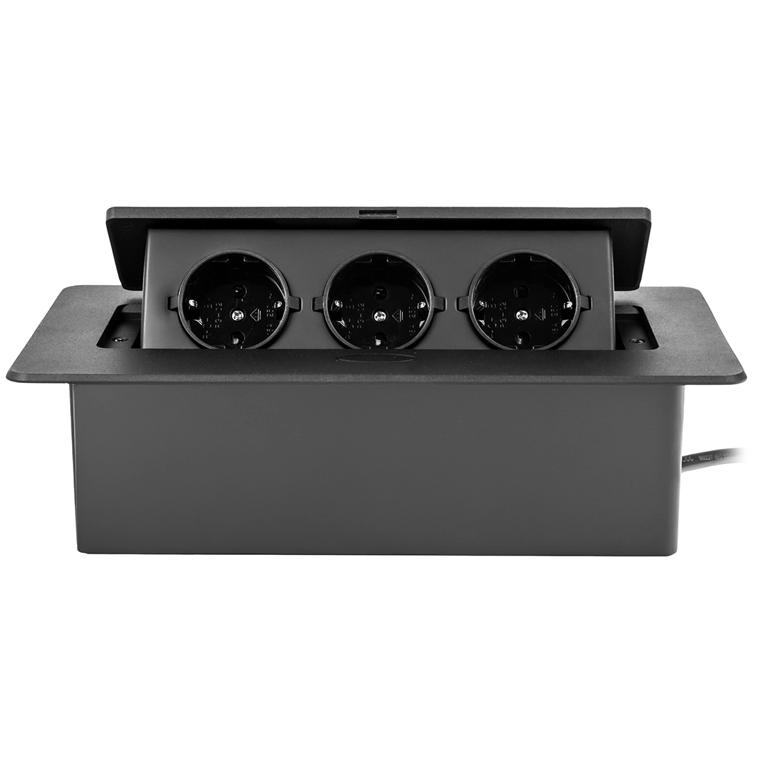 -Łatwa instalacja: Prosty montaż poprzez wycięcie otworu w blacie i umieszczenie gniazda w odpowiednim miejscu.