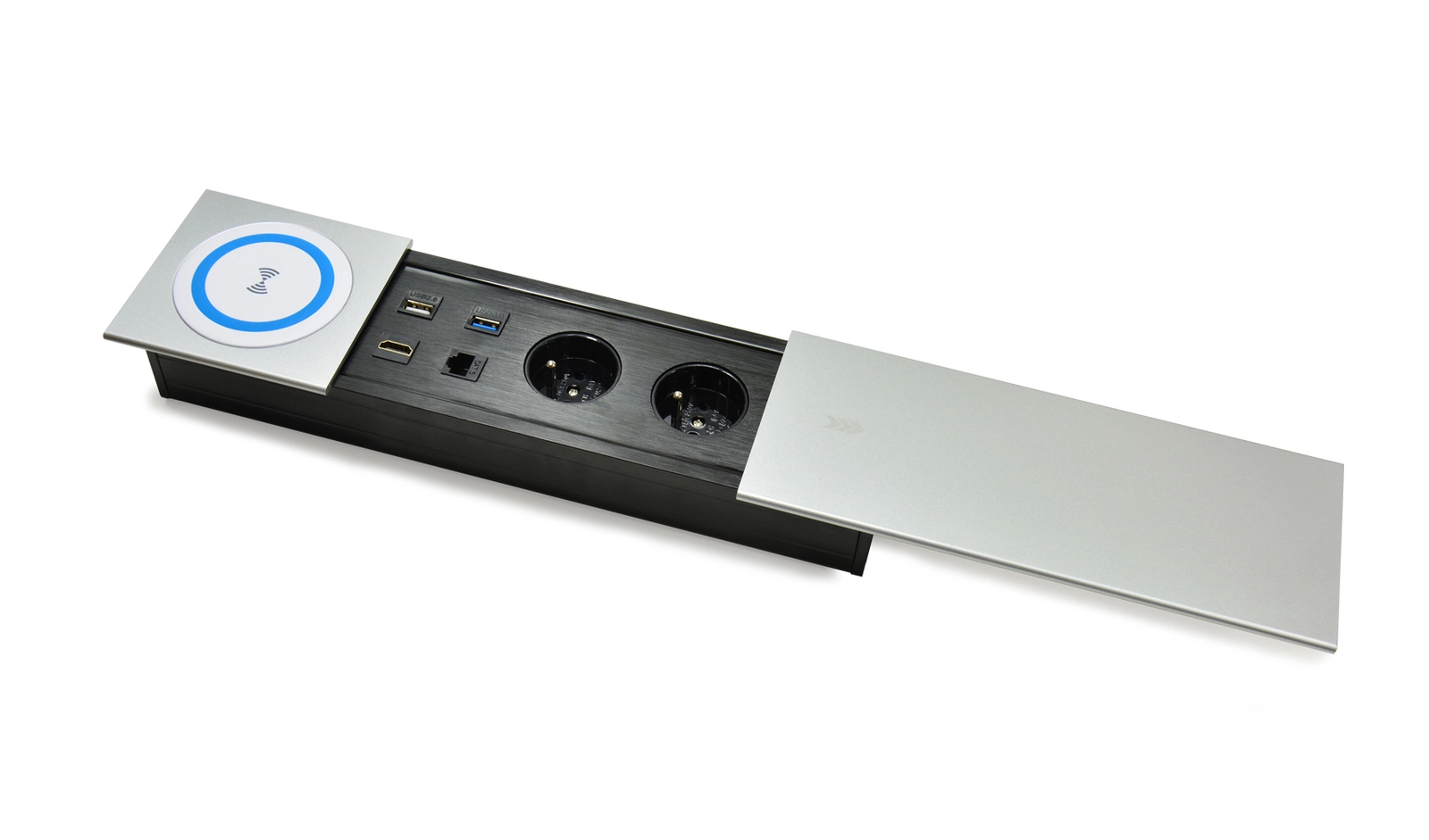 Czy poszukujesz idealnego rozwiązania, które połączy elegancję i funkcjonalność w Twoim biurze, salonie sprzedaży, sali konferencyjnej lub domu? Gniazdo blatowe zasuwane Spacetronik to wszechstronny produkt, który sprosta każdemu wyzwaniu. Dzięki nowoczesnemu designowi i różnorodnym portom, takim jak USB, HDMI i Ethernet, oraz możliwości szybkiego ładowania indukcyjnego, nasze gniazda meblowe zapewnią wygodę i estetykę w każdej przestrzeni pracy.