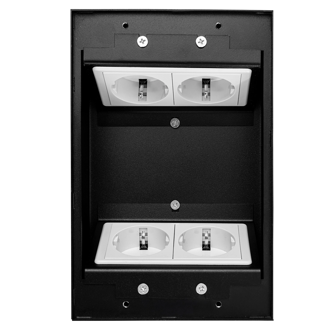 -Uniwersalne 4x gniazda Schuko: Gniazda tego typu pozwalają na podłączenie urządzeń elektrycznych o różnych napięciach.