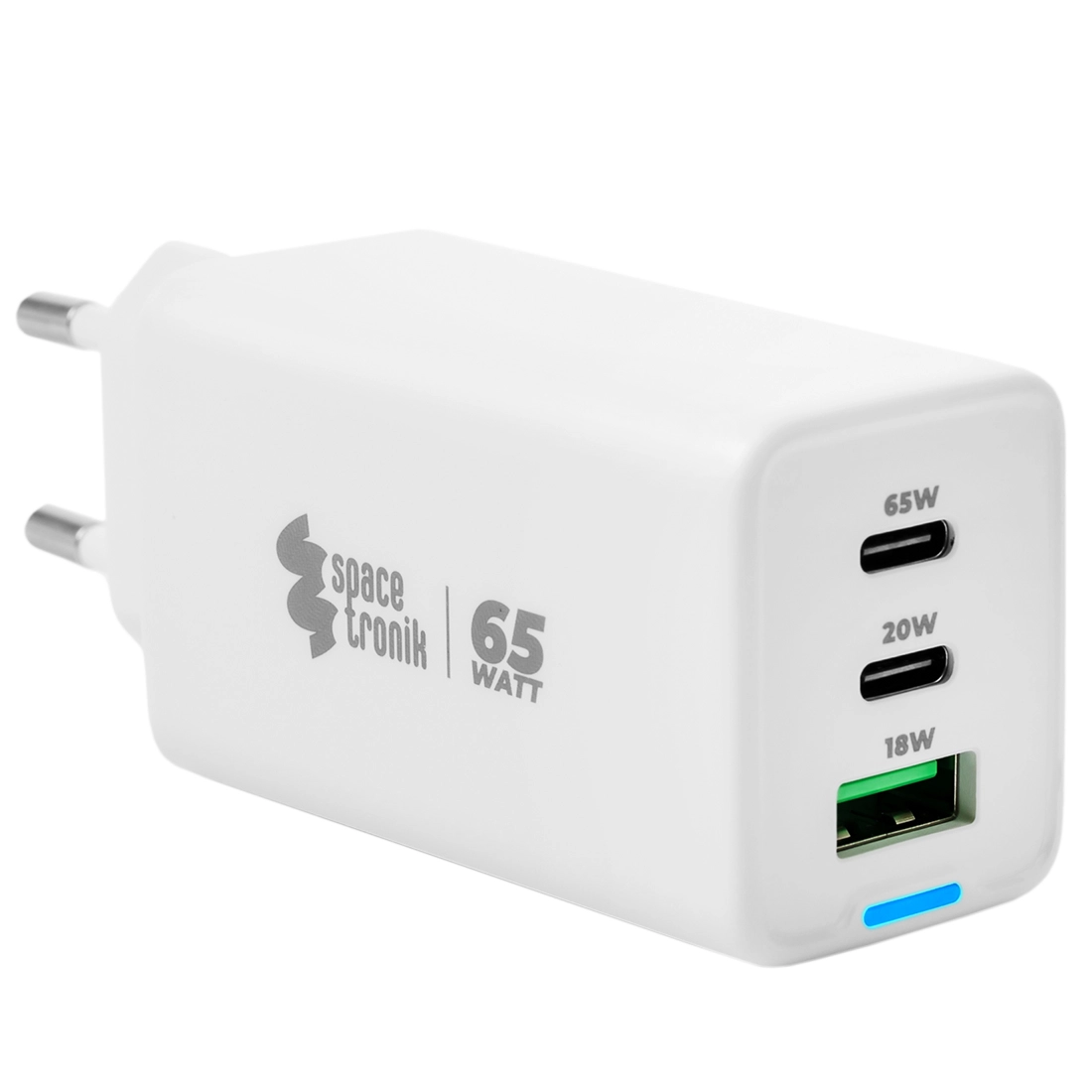 Ładowarka Spacetronik SPU-CA653W 3w1 65W PD USB-C USB Quick 5A Biała