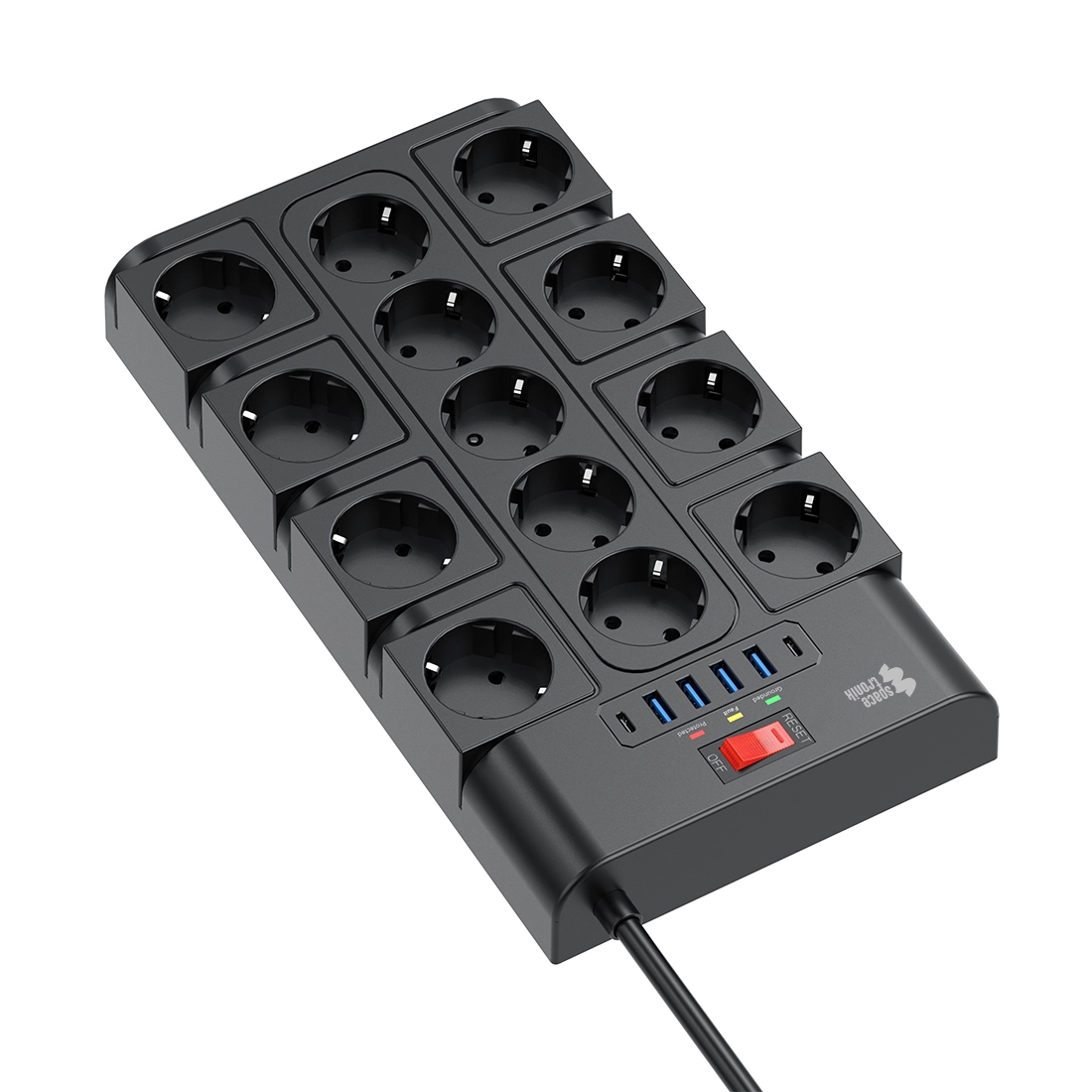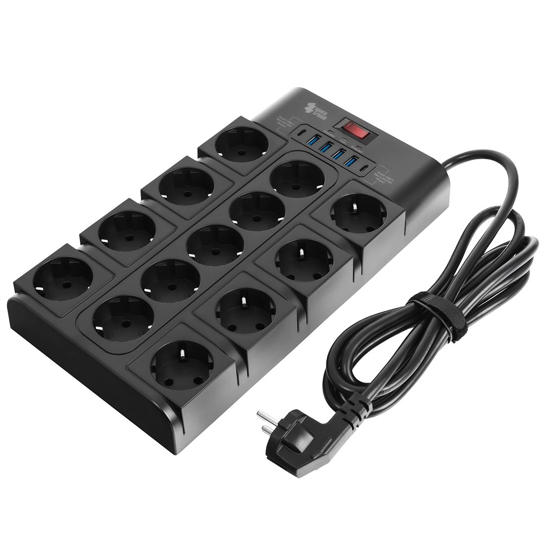 13 gniazd AC, 4 porty USB-A, 2 porty USB-C