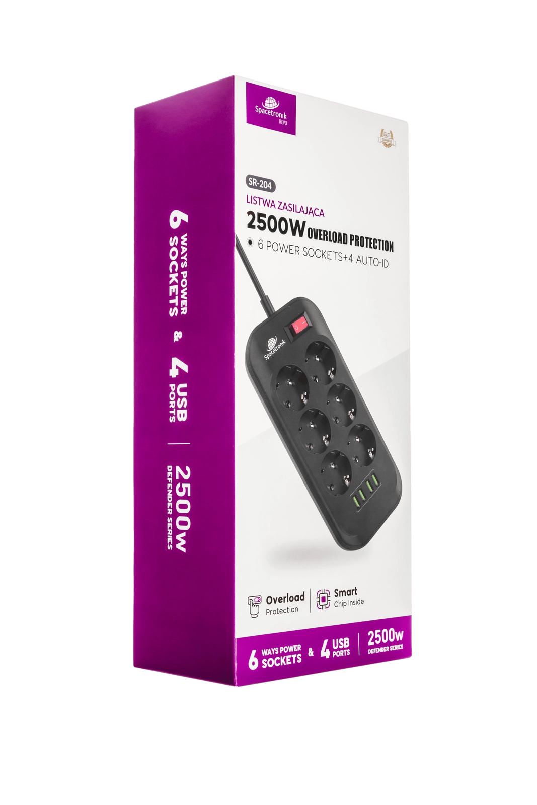 Listwa zasilająca Spacetronik SR-204. Została zaprojektowana w taki sposób, by móc być kompatybilna z jak największą liczbą sprzętów elektrycznych. Dzięki 6 wejściom AC i 4 portom USB-A możesz ładować nawet 10 urządzeń naraz! Natomiast maksymalna moc 17W będzie odpowiednia, by szybko naładować Twój telefon czy też tablet. Co więcej, wejście 2500W sprawi, że ładowarka będzie współgrać z większością urządzeń gospodarstwa domowego. Bez różnicy czy to odkurzacz, lodówka czy też komputer.