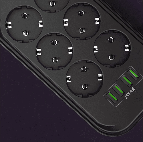 Listwa zasilania Spacetronik SR-204 została wyposażona również w 4 porty USB-A Auto-ID. Obsługują one technologię szybkiego ładowania. Oznacza to, że z łatwością będziesz w stanie w okamgnieniu naładować np. swój telefon. Bez potrzeby kupowania dodatkowej zewnętrznej ładowarki do smartfona. Jednak telefon to nie jedyne urządzenie, które możesz w taki sposób podładować. Będziesz w stanie podłączyć pod listwę w zasadzie każde urządzenie obsługujące kabel USB-A. Niezależnie od tego, czy to tablet, laptop czy inteligentny zegarek.