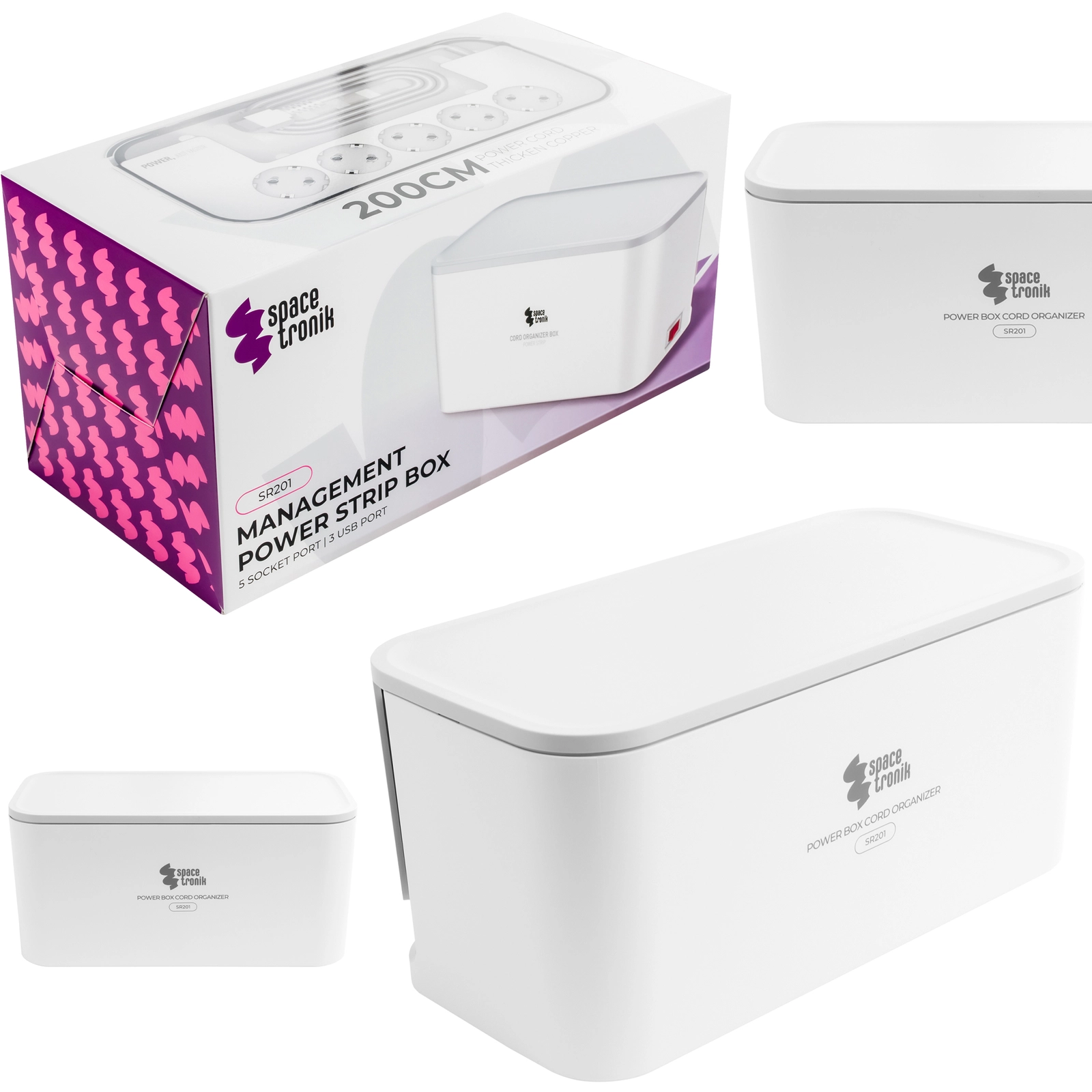 W czasach gdy urządzenia elektroniczne towarzyszą nam na każdym kroku, czasami nie zdajemy sobie sprawy, jak bardzo na nich polegamy. Jednak, by mogło mieć to miejsce, muszą być w pełni naładowane. Spacetronik SR201 to organizer kabli, który pozwoli zachować porządek na biurku. Wbudowana uniwersalna listwa zasilająca umożliwia zasilanie sprzętów elektrycznych z wtyczkami typu schuko. Dodatkowo pozwala na szybkie i wygodne ładowanie akumulatorów w urządzeniach przenośnych takich jak smartfony, tablety czy też inne gadżety. Listwa zasilająca jest wyposażona w 3 porty USB, dzięki czemu można do niej podłączyć większość popularnych urządzeń. Jednocześnie można zasilać aż 8 urządzeń. Ładowarka posiada również funkcje Quick Charge, co oznacza, że - urządzenie jest w stanie szybko i efektywnie naładować akumulatory o dużej pojemności. Listwa zasilania posiada kabel o długości 200cm. Box posiada otwory wentylacyjne, które doskonale odprowadzają ciepło. Mocna ładowarka USB