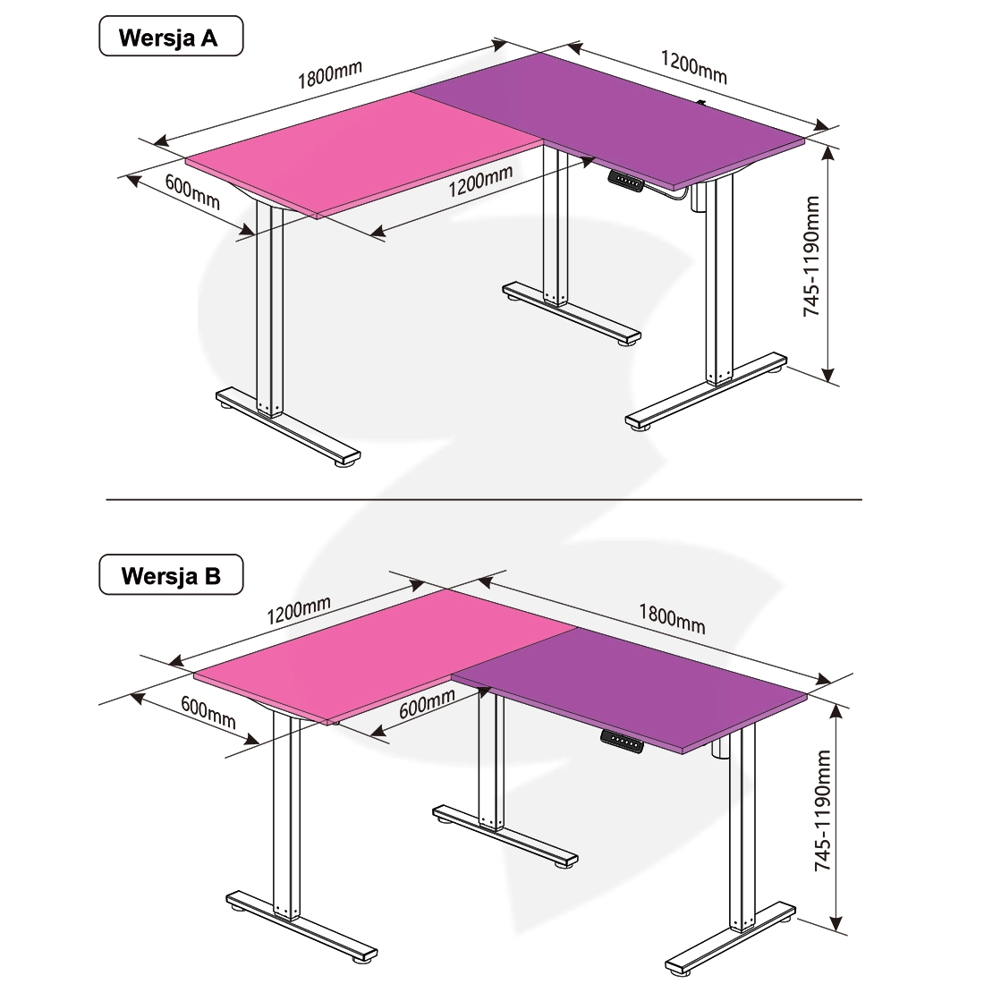 W celu zapewnienia Ci jak największej wygody blat biurka został uformowany w kształt litery "L". Dzięki temu będziesz mógł mieć pod ręką wszystko to, czego potrzebujesz do wygodnej pracy. Blat biurka składa się z dwóch części, które możesz ustawić zarówno w prawą jak i lewą stronę. Dzięki temu będzie to idealne rozwiązanie zarówno dla osób praworęcznych, jak i leworęcznych.. Co więcej, taka budowa pozwoli Ci na prostsze dopasowanie mebla do swojej przestrzeni. Obie części blatu mają wymiary 120×60×2,5 cm. Dlatego też będziesz mógł postawić na nim wszystko to, co jest Ci potrzebne do wygodnej pracy. Bez różnicy czy będzie to laptop, monitory czy też kuwety z dokumentami. Taki kształt będzie również idealnym rozwiązaniem jako biurko gamingowe dla graczy. Kilka monitorów, kamera, kontrolery do gier czy też różne neony. Z biurkiem elektrycznie regulowanym Spacetronik SPE-L123 będziesz miał wszystko to, czego potrzebujesz zawsze na wyciągnięcie ręki.