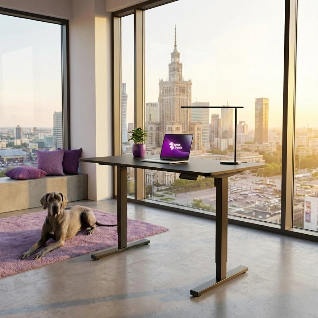 - Zawartość zestawu: blat, stelaż elektryczny, kontroler, zestaw śrub i kluczy montażowych, instrukcja obsługi w języku polskim