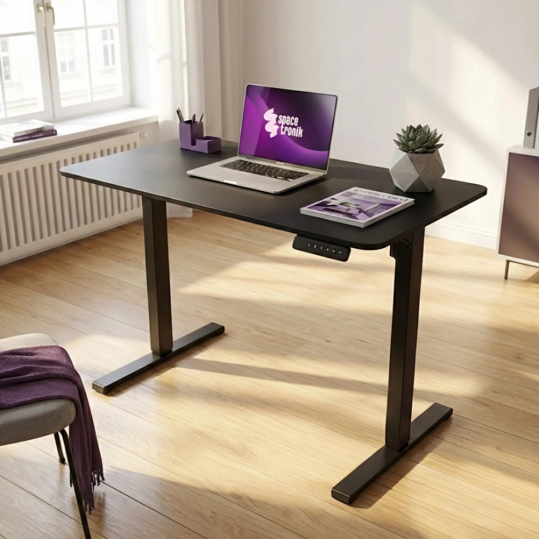 Masz ograniczoną przestrzeń, ale nie chcesz rezygnować z ergonomii? Biurko elektryczne SPEO125BB z blatem 100x60 cm powstało z myślą o kompaktowych domowych biurach i stanowiskach pracy w małych pokojach. Dzięki elektrycznej regulacji wysokości w zakresie 75–110 cm łatwo przełączysz się z pozycji siedzącej na stojącą, odciążając kręgosłup i zyskując więcej energii w ciągu dnia. Jednolita, czarna konstrukcja blatu i stelaża nadaje wnętrzu profesjonalny, nowoczesny charakter.