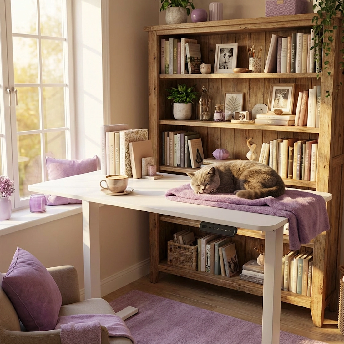 Elektryczny mechanizm regulacji wysokości w zakresie 75–110 cm działa płynnie i dyskretnie. Pomaga przełamywać długotrwałe pozostawanie w jednej pozycji, co może ograniczać dyskomfort pleców i karku. Zmiana wysokości jest szybka i cicha, dlatego bez problemu dopasujesz ustawienie blatu do pracy, nauki czy wideokonferencji.