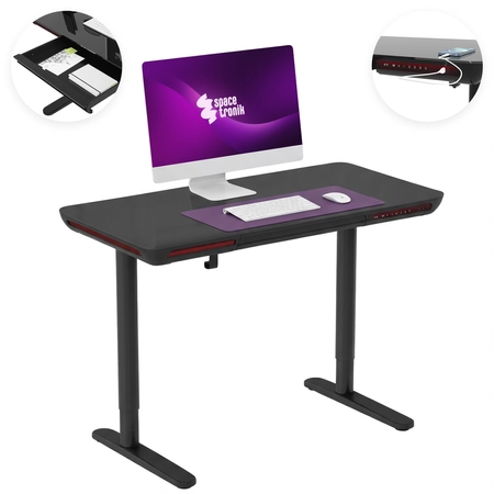 biurko elektryczne, biurko z regulacją wysokości, biurko spacetronik, biurko szklane, biurko czarne, biurko z szufladą, biurko z portami usb, biurko led