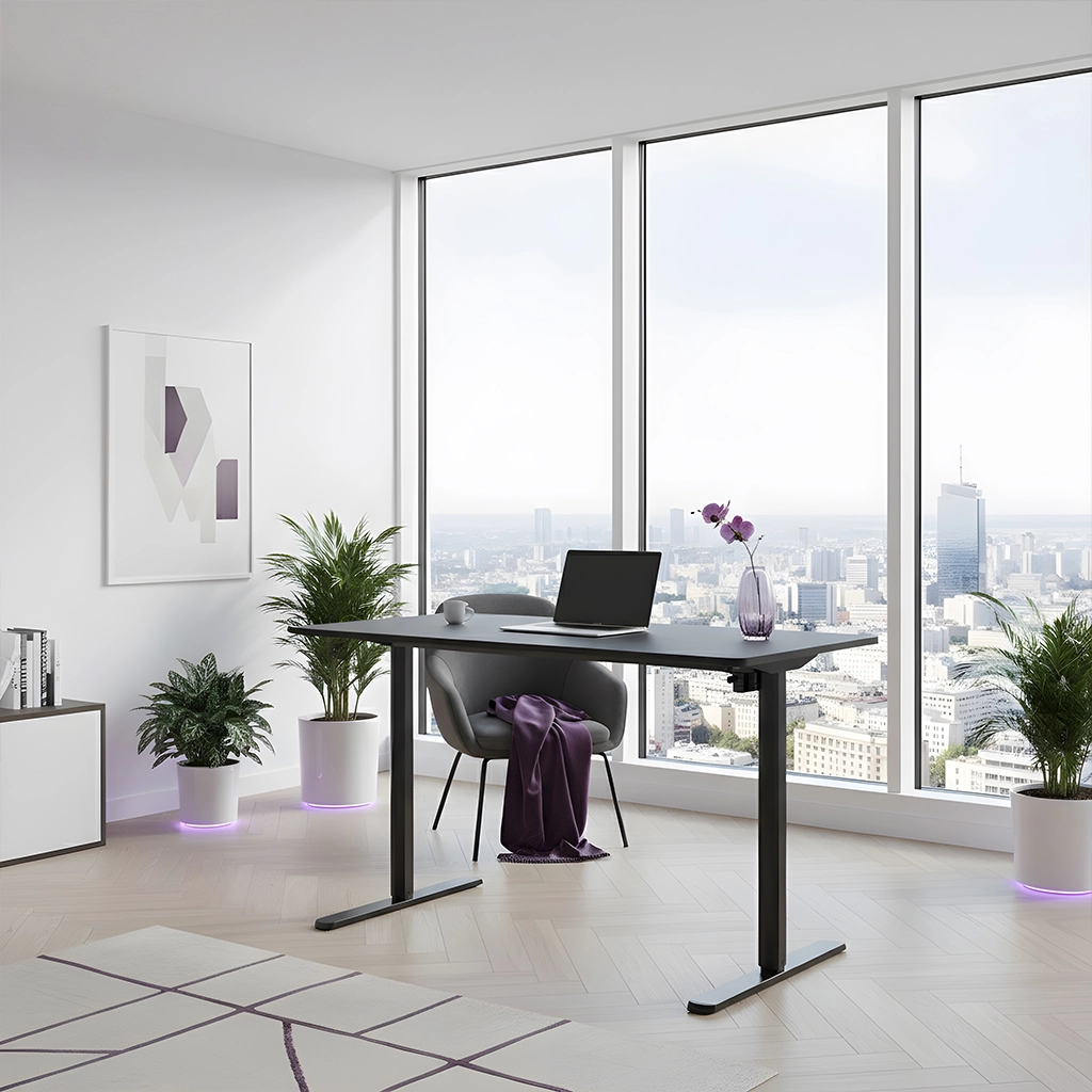 Biurka Spacetronik Moris zostały zaprojektowane z myślą o elastyczności umożliwiającej użytkownikom korzystanie z pozycji siedzącej i stojącej. Biurka z regulacją wysokości pozwalają na łatwą zmianę pozycji, wspierając zdrowy ruch w ciągu dnia. Panel sterowania z dwoma przyciskami umożliwia cichą, szybką, beznarzędziową i płynną regulację wysokości za pomocą jednego dotknięcia. Dzięki uniwersalnemu i eleganckiemu wyglądowi, biurko z regulacją wysokości doskonale pasuje zarówno do biura, jak i domowego środowiska.