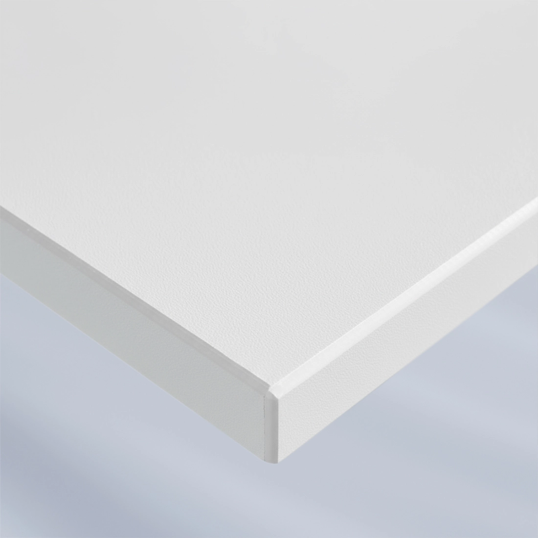 Blat w białym chropowatym dekorze wykonano z wysokiej jakości płyty obustronnie laminowanej o grubości 18 mm. Dzięki obrzeżom ABS jest odporny na uszkodzenia mechaniczne i zachowuje estetyczny wygląd przez długi czas.