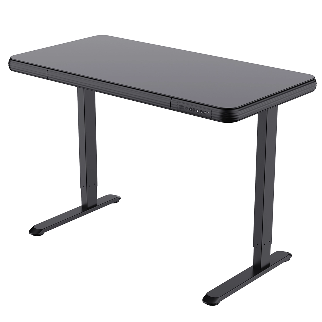 Czarne biurko elektryczne z regulacją wysokości i szklanym blatem Spacetronik Astrid SPEB125BG