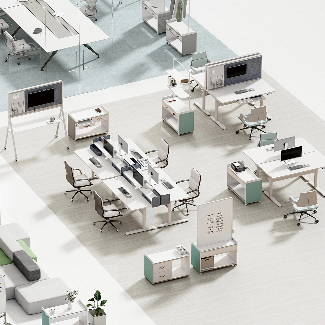 Dzięki ukrytym kółkom, biurko z łatwością przesuniesz w dowolne miejsce, bez rysowania podłogi i bez konieczności podnoszenia. To wygodne rozwiązanie dla nowoczesnych przestrzeni, które wymagają elastyczności i szybkiej reorganizacji bez utraty estetyki.