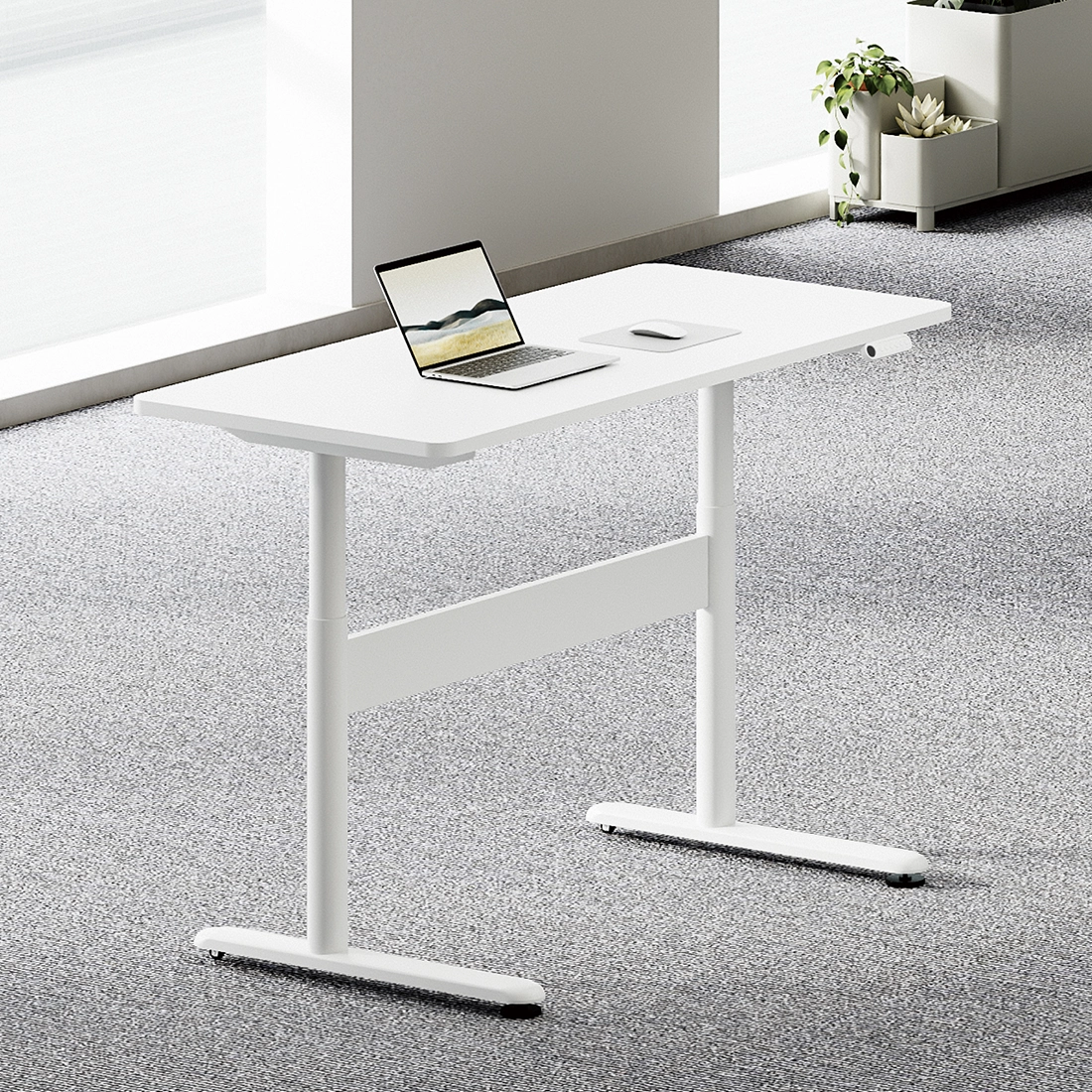 Elegancki wygląd biurka idzie w parze z funkcjonalnością – dzięki dwóm programowalnym ustawieniom wysokości jednym przyciskiem przechodzisz do ulubionej pozycji pracy. Matowe wykończenie i neutralna kolorystyka sprawiają, że pasuje do każdego nowoczesnego biura.