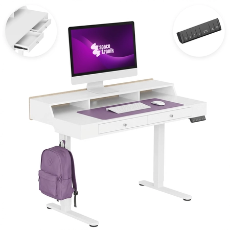 Nowoczesne białe regulowane biurko sit stand Spacetronik z pamięcią wysokości i systemem antykolizyjnym 120x60 cm Spacetronik SPEF141WL