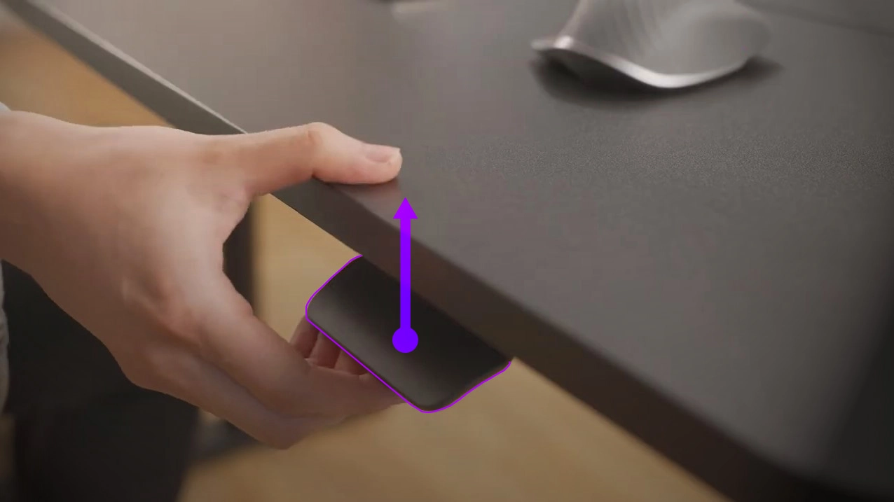 Dzięki zastosowaniu sprężyny gazowej, podnoszenie biurka nie wymaga od Ciebie podłączenia do prądu. Sam proces odbywa się za pomocą naciśnięcia małej rączki, zamontowanej pod blatem przy krawędzi biurka. Unoszenie i obniżanie biurka jest płynne, ciche i szybkie. Jest to proces prosty, niewymagający od Ciebie rozkręcania biurka.