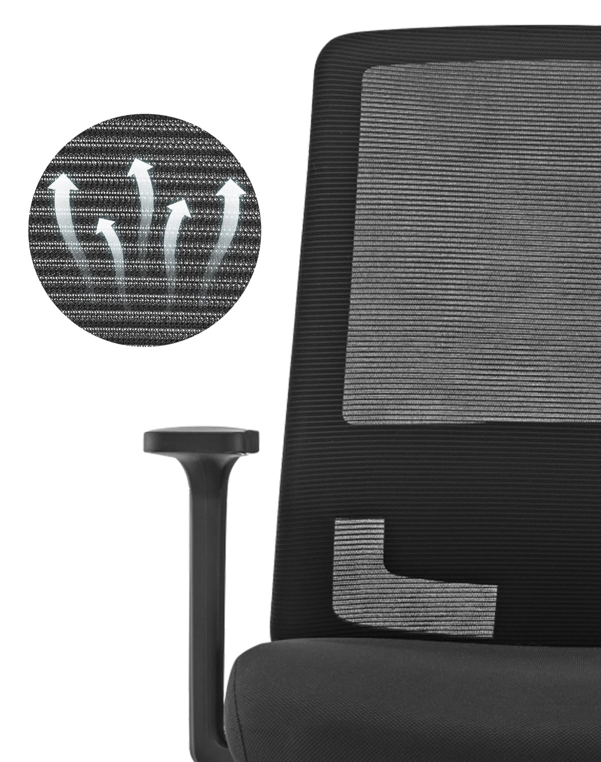 W oparciu fotela oraz zagłówku zastosowano oddychającą siatkę, która pozwala na cyrkulację powietrza.