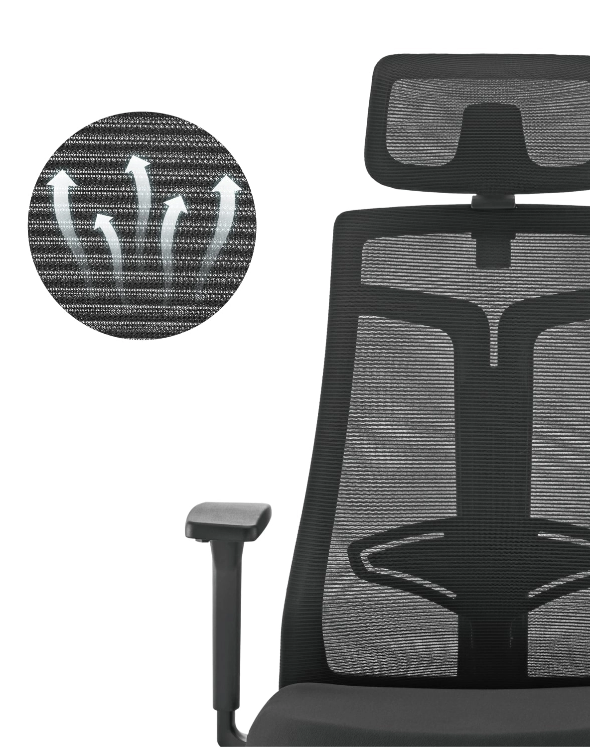 W oparciu fotela oraz zagłówku zastosowano oddychającą siatkę, która pozwala na cyrkulację powietrza.