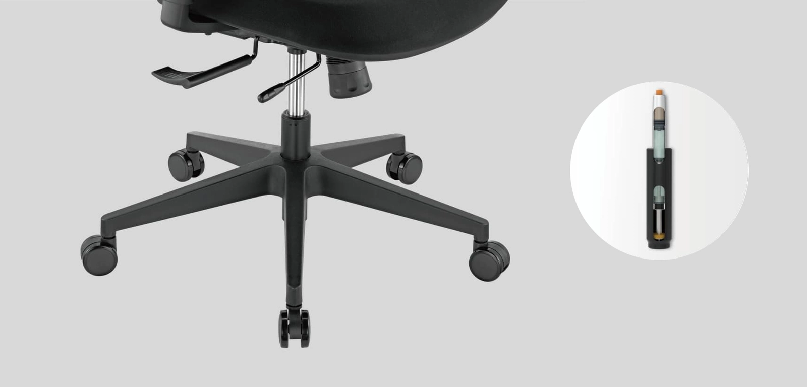 Podnośnik gazowy klasy 3 100 mm to kluczowy element fotela biurowego Spacetronik GRINGO, gwarantujący wygodę i ergonomię użytkowania poprzez regulację wysokości. Zapewnia stabilność fotela nawet przy intensywnym użytkowaniu. Podstawa z tworzywa nylonowego o średnicy 340 mm oraz kółka z PU o średnicy 60 mm zapewniają płynne poruszanie się po podłodze, minimalizując hałas i ryzyko uszkodzenia powierzchni. To kompleksowe rozwiązanie zapewniające wygodę, stabilność i ergonomiczność podczas codziennej pracy w biurze.