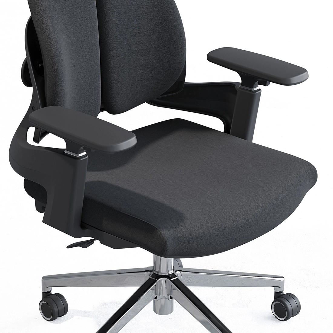 Jednym z najważniejszych czynników wpływających na komfort naszych pleców podczas długotrwałego siedzenia jest rodzaj oparcia w fotelu, na którym siedzimy. Standardowe oparcia mogą generować nadmierny nacisk na różne rejony naszych pleców, gdy mamy krzesło nieodpowiednio dobrane do naszego wzrostu. W trosce o Twój komfort fotel do biurka Spacetronik SPC-BARRY-00 został wyposażony w specjalne dwuczęściowe, ergonomiczne oparcie. Dostajesz do dyspozycji 2 tryby pracy oparcia: