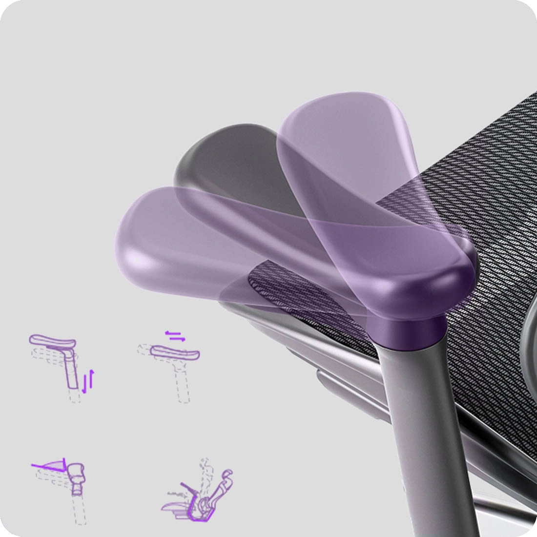 - Podłokietnik: Regulowany 4D (Góra - dół, przód - tył, na boki - 75° - zsynchronizowane z oparciem),