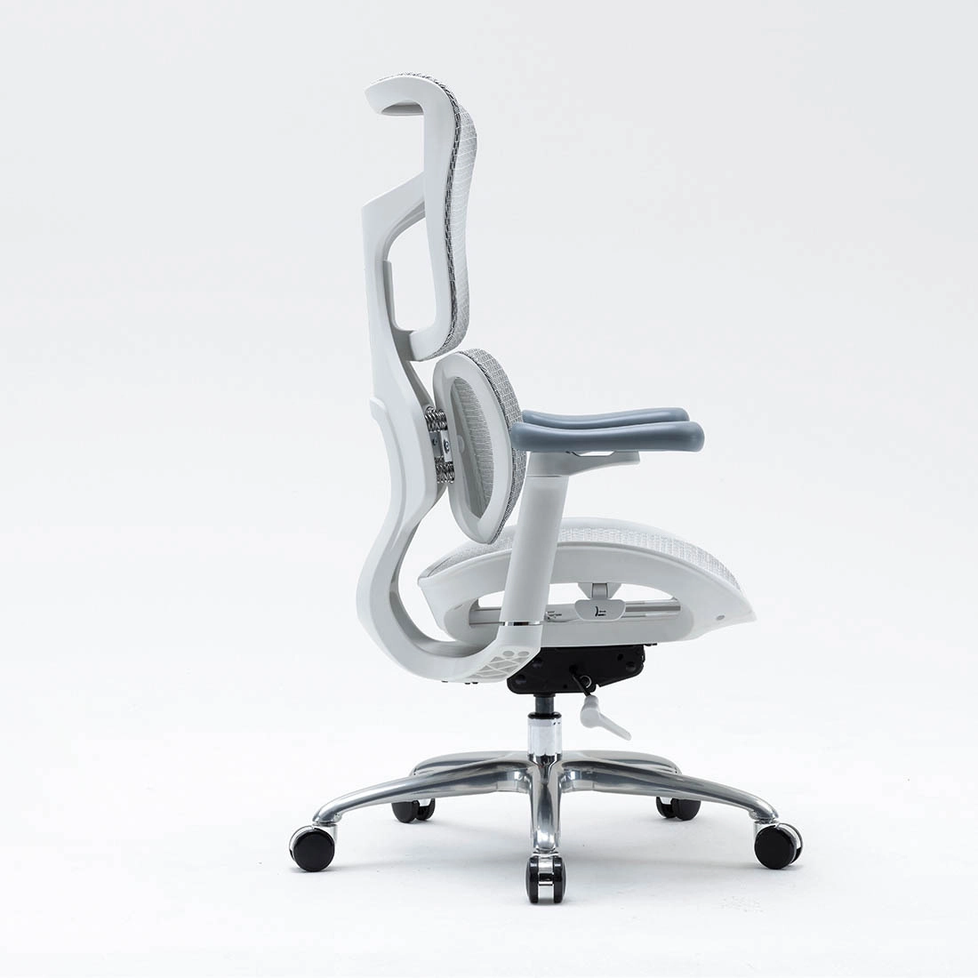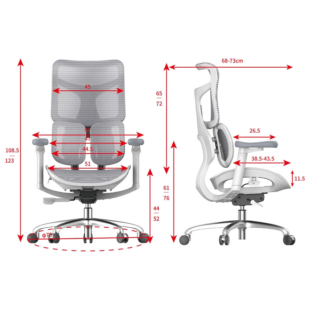 - Materiał: Siatkowe oparcie i siedzisko z miękkimi podłokietnikami pokrytymi powłoką PU,