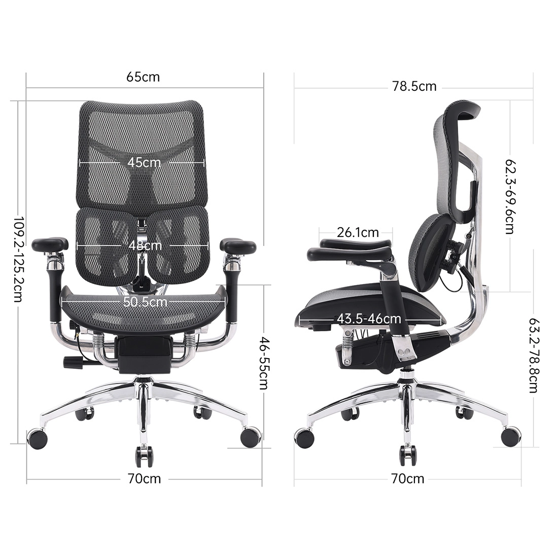 • Możliwość dopasowania podparcia odcinka lędźwiowego - Automatyczna, podwójna, ręczna