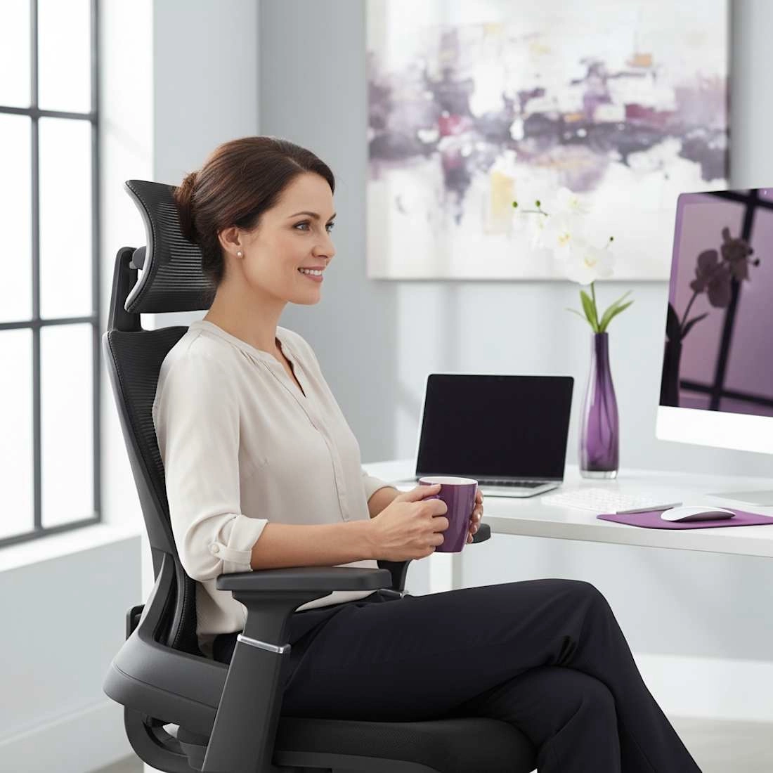 Podłokietniki z Regulacją 2D: Umożliwiają idealne ułożenie przedramion, odciążając barki i nadgarstki podczas pisania na klawiaturze.