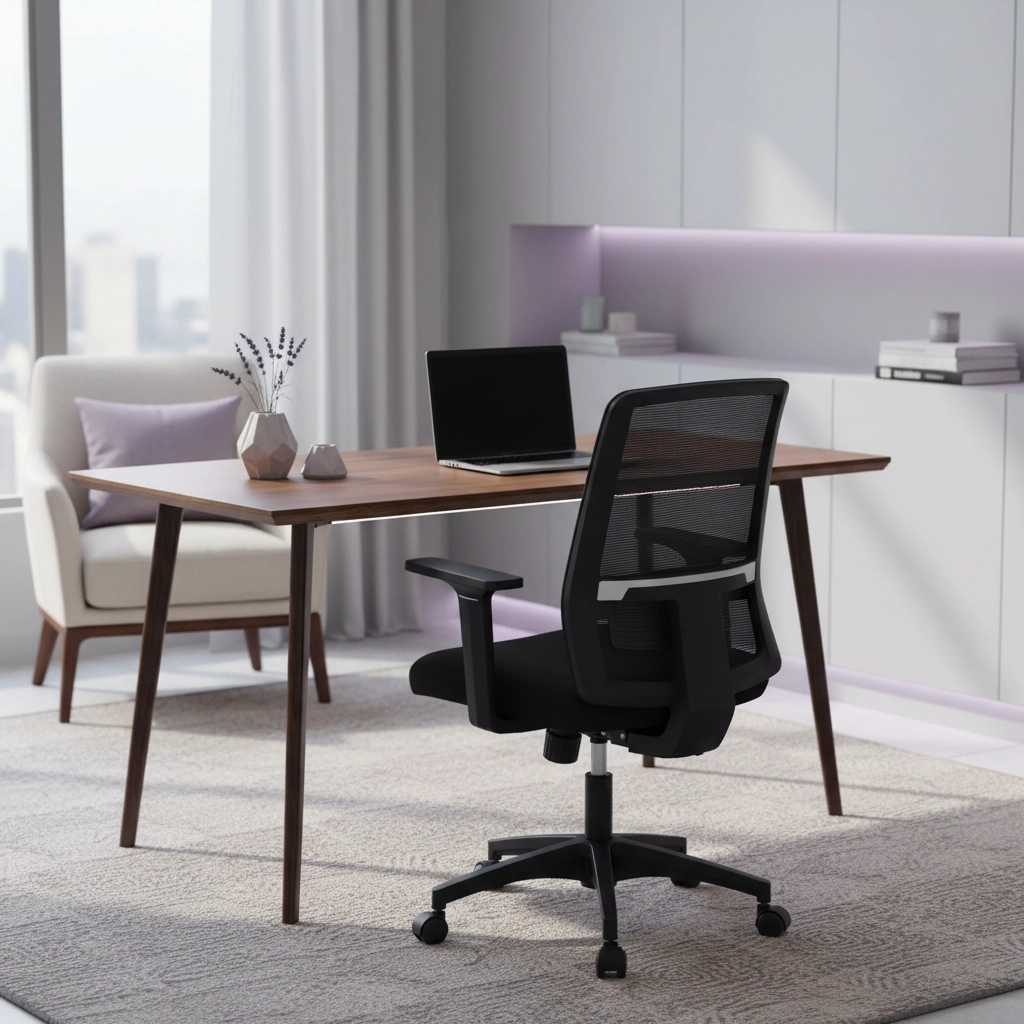 Wysoka jakość elementów, z których został wykonany fotel do biurka, przekłada się na prestiżowy efekt wizualny. Fotel posiada oparcie z oddychającą siatką MESH oraz siedzisko z przyjemnego w dotyku materiału z pianką o wysokiej gęstości wewnątrz. Oparcie zapewnia cyrkulacje powietrza i chłodzenie, co jest szczególnie ważne w okresie letnim.