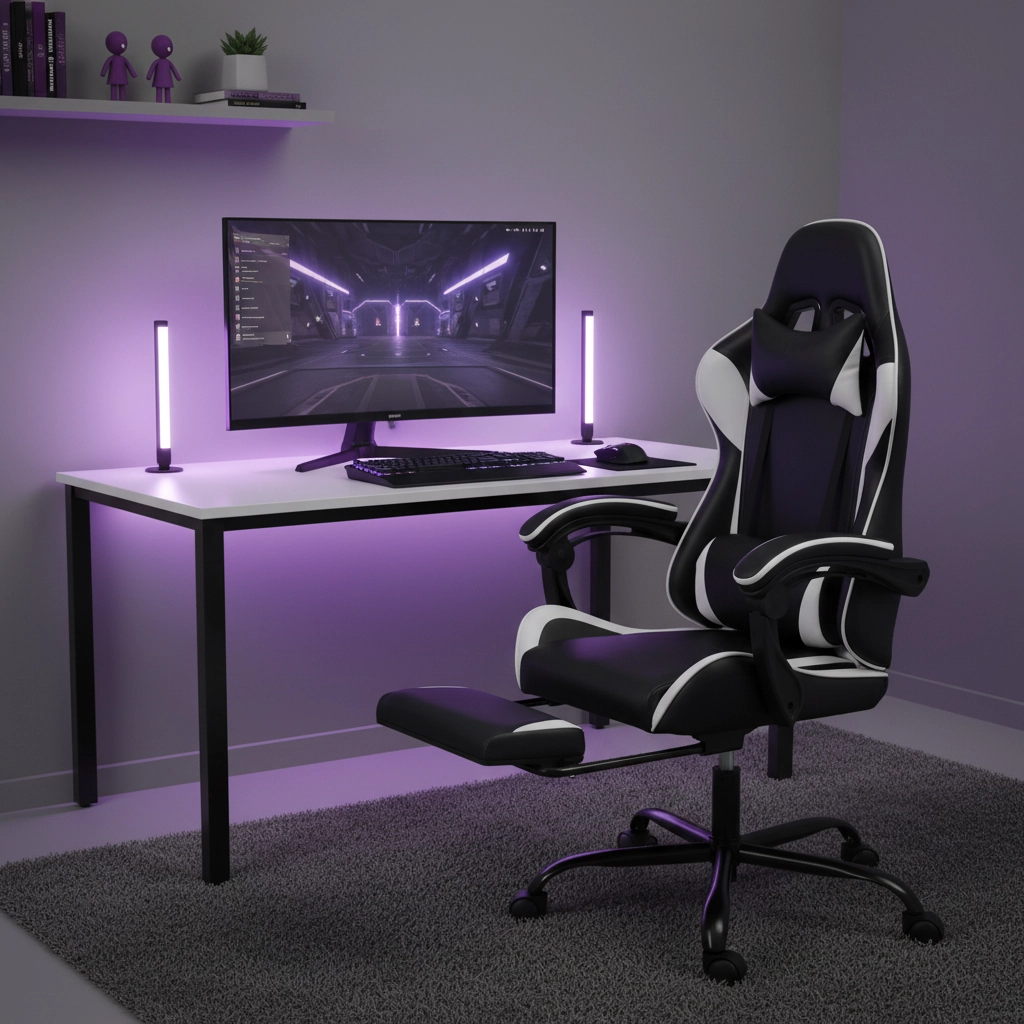 Wygodne krzesło gamingowo biurowe z podnóżkiem i poduszkami pod lędźwie i szyję Spacetronik Rally