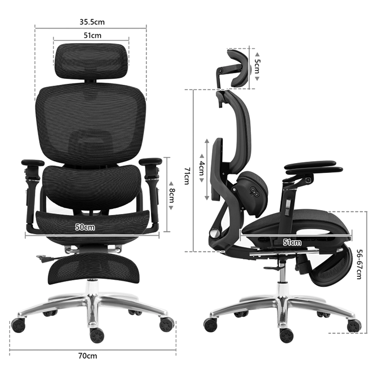 Głębokość siedziska — możliwość regulacji głębokości siedziska w zakresie 47-52 cm pozwala na właściwe podparcie ud i zachowanie prawidłowego krążenia, niezależnie od sylwetki użytkownika.