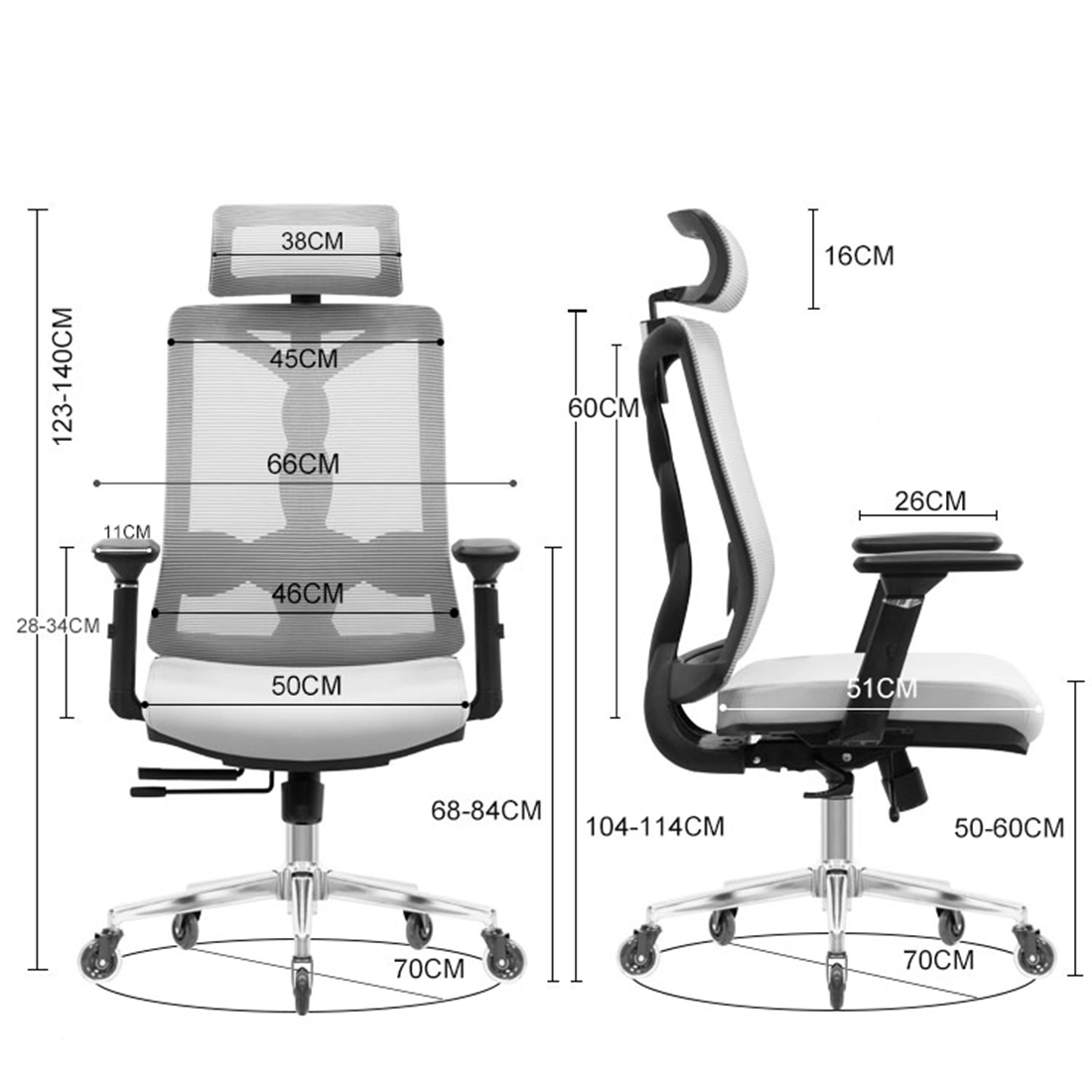 Podłokietniki 4D z Miękkimi Nakładkami: Ustaw idealną pozycję dla swoich przedramion w czterech płaszczyznach, odciążając barki i kark podczas pisania i odpoczynku.