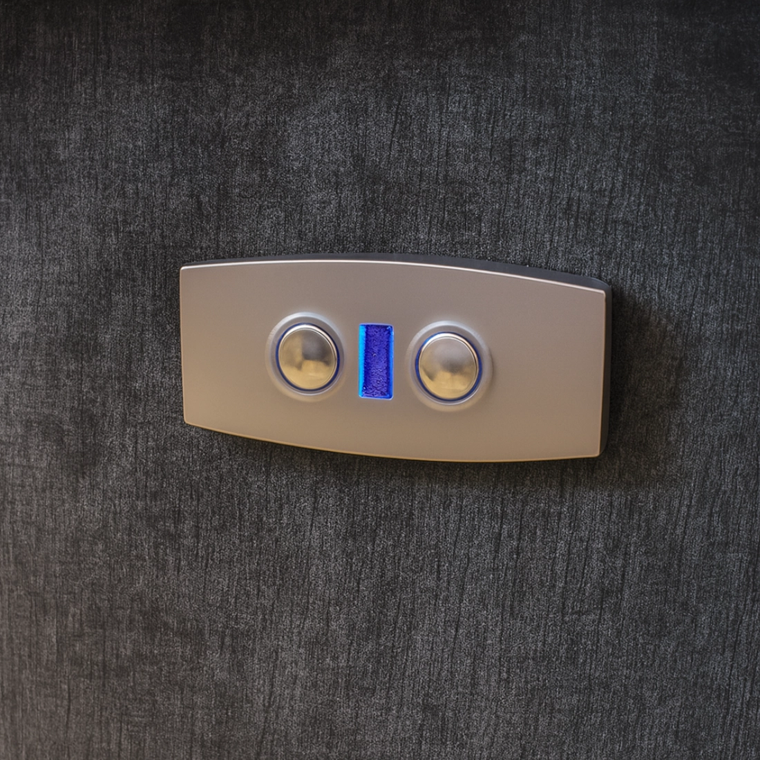 Elektryczne składanie i rozkładanie odbywa się za pomocą dwóch intuicyjnych przycisków. Mechanizm pracuje płynnie i cicho, a ruch możesz zatrzymać w dowolnym momencie — dokładnie w punkcie, który jest dla Ciebie najwygodniejszy. Dzięki temu precyzyjnie dopasujesz kąt oparcia i pozycję podnóżka do czytania, oglądania lub krótkiej drzemki.