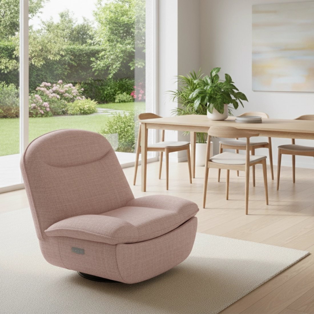 FLAX 05 w kolorze delikatnego różu tworzy prywatną strefę relaksu – do oglądania filmów, czytania, drzemki czy regeneracji po pracy. Jednym przyciskiem przejdziesz z pozycji siedzącej do leżącej, a dzięki wbudowanym portom USB naładujesz telefon lub tablet, nie wstając z miejsca. Subtelny, różowy odcień łatwo dopasujesz do salonu, sypialni lub pokoju wypoczynkowego.