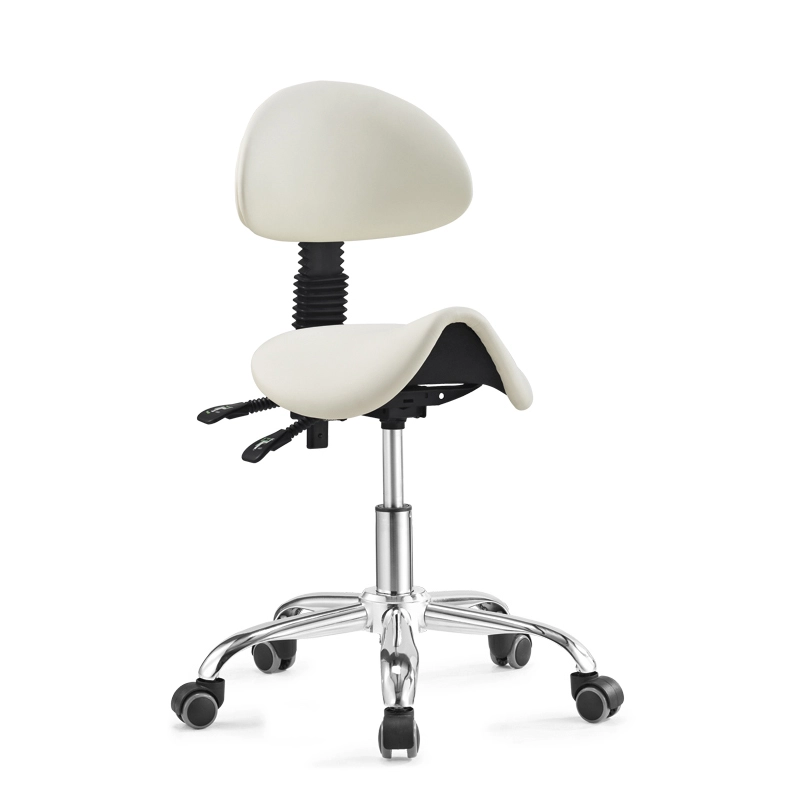 Kształt siodłowy wywodzi się z siodeł jeździeckich - zaprojektowany tak, by wymuszać otwartą pozycję bioder i prosty kręgosłup. Siedzisko tego typu sprzyja aktywnemu siedzeniu: miednica ustawia się naturalnie, wymuszając otwarty kąt bioder (ok. 135°). Kręgosłup zachowuje fizjologiczną krzywiznę, a napięcie w odcinku lędźwiowym się zmniejsza. To rozwiązanie szczególnie polecane osobom pracującym wiele godzin przy biurku, w laboratoriach lub gabinetach kosmetycznych.