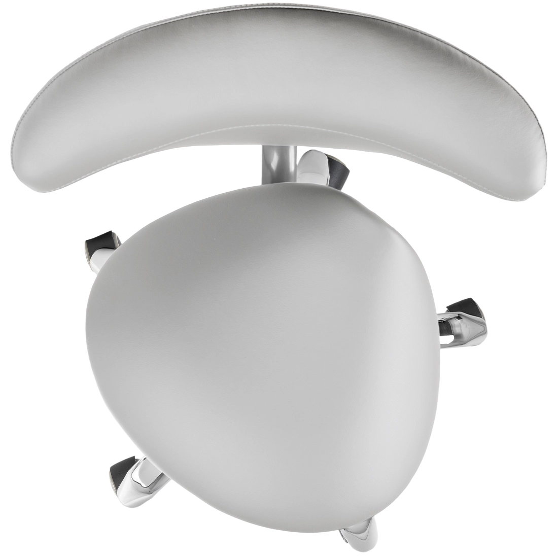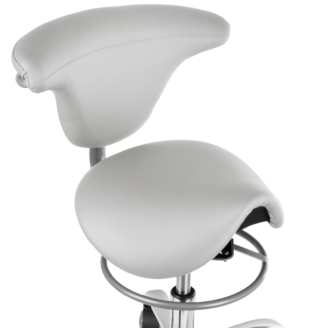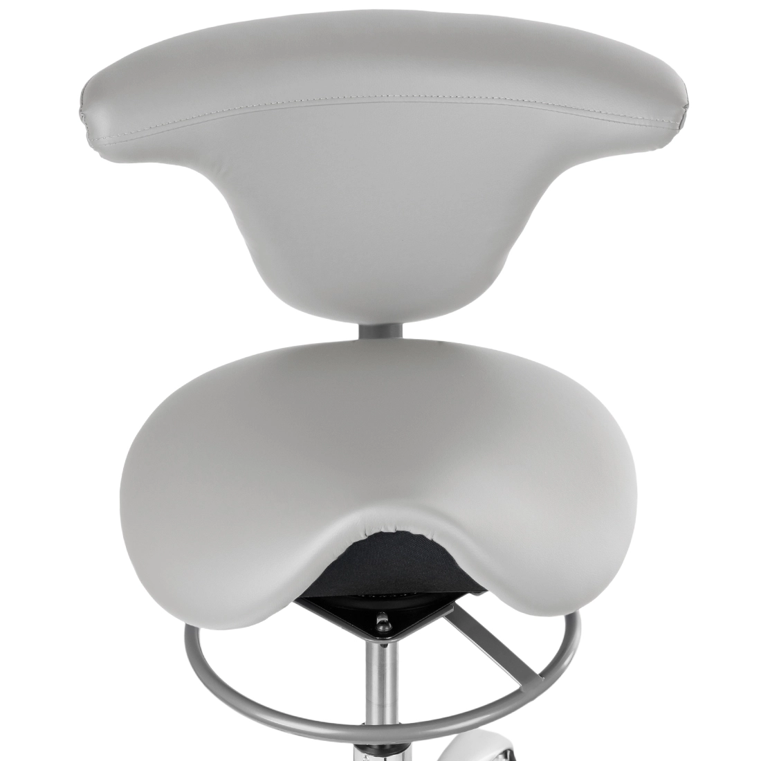 Oparcie hokera zostało zaprojektowane z myślą o wszechstronności pracy. Możesz używać go w klasyczny sposób, jako podparcia dla odcinka lędźwiowego, ale także siąść odwrotnie i oprzeć ręce, dzięki czemu oparcie pełni funkcję wygodnego podłokietnika. To idealne rozwiązanie dla specjalistów, którzy często zmieniają pozycję, np. kosmetologów, stomatologów czy fizjoterapeutów.