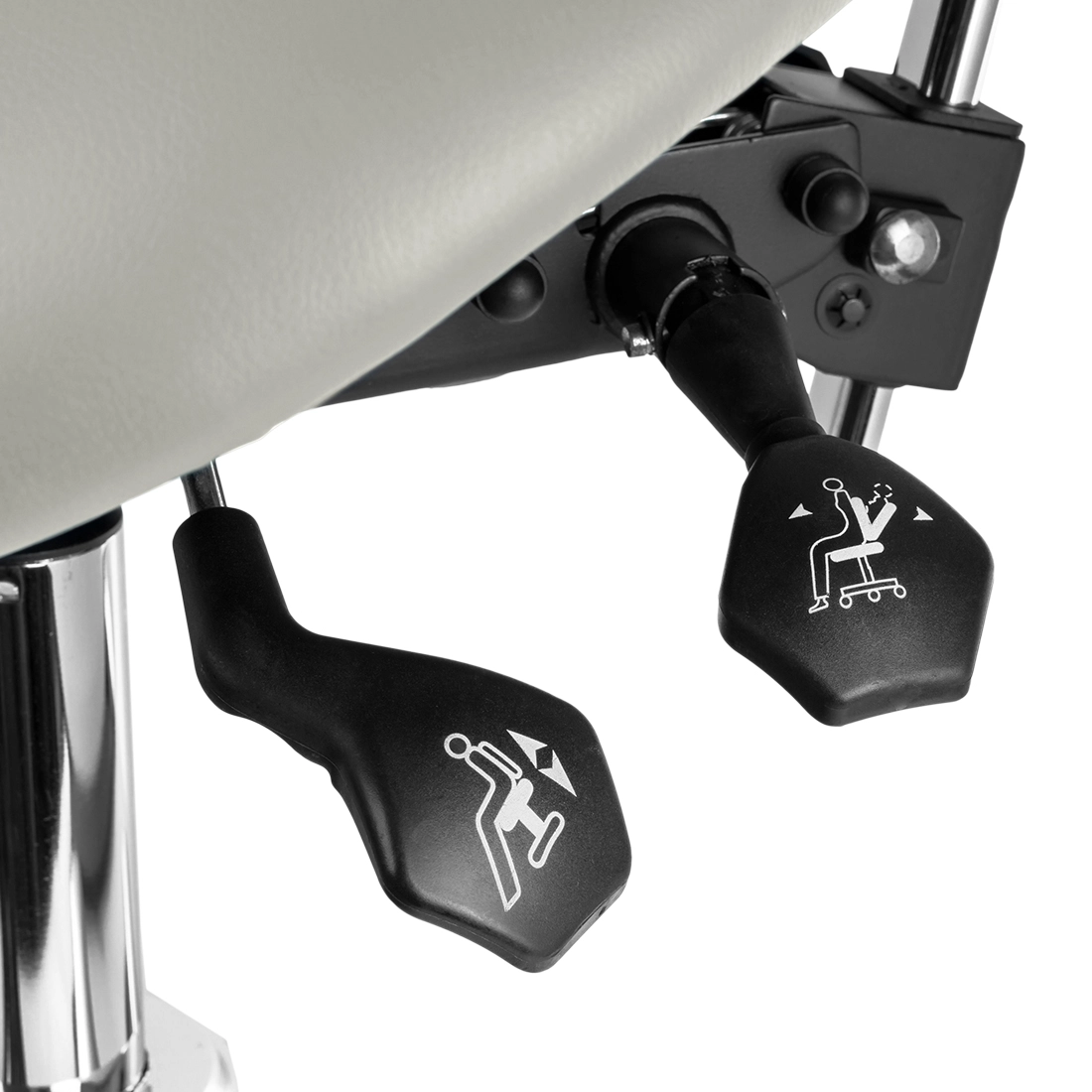 Na dźwigniach pod siedziskiem znajdują się piktogramy ułatwiające obsługę - wystarczy lekki ruch ręką, by dostosować krzesło do własnych potrzeb.